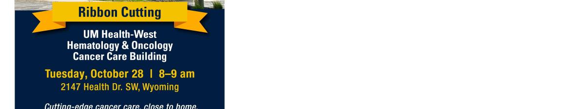 You are invited to join us for a ribbon cutting ceremony celebrating the opening of the UM Health-West Hematology & Oncology Cancer Care building.